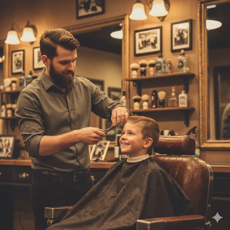 Cortes pacientes e divertidos para os mais pequenos. As famílias adoram-nos — fazemos as crianças sentirem-se confortáveis e os pais tranquilos.